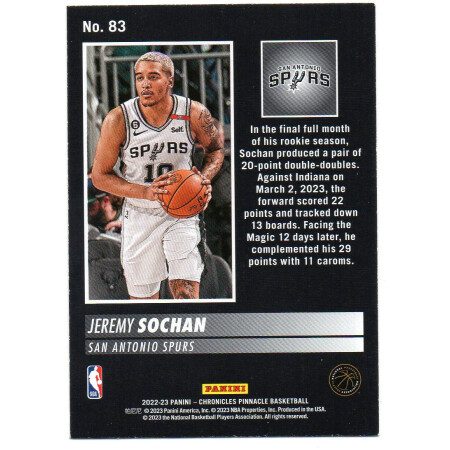 Jeremy Sochan – 2022-23 Panini Pinnacle No.83 Rookie Card