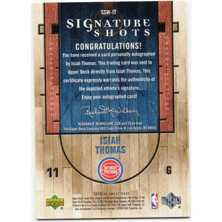 KARTY NBA Z AUTOGRAFEM TO KOLEKCJONERSKIE KARTY ZAWIERAJĄCE AUTENTYCZNY PODPIS ZAWODNIKA NBA. AUTOGRAFY SKŁADANE SĄ BEZPOŚREDNIO NA KARCIE LUB NA NAKLEJCE PRZYKLEJONEJ POTEM NA KARTĘ. KARTY KOLEKCJONERSKIE TO OFICJALNY, LICENCJONOWANY PRODUKT LIGI NBA. AUTOGRAFY SKŁADANE SĄ PRZEZ ZAWODNIKÓW W OBECNOŚCI PRZEDSTAWICIELA PRODUCENTA KARTY. KAŻDA KARTA Z AUTOGRAFEM NA ODWROCIE POSIADA CERTYFIKAT AUTENTYCZNOŚCI POTWIERDZONY PRZEZ WYDAWCĘ KARTY ORAZ LIGĘ NBA.