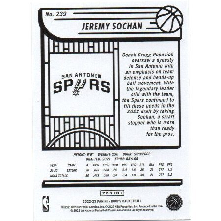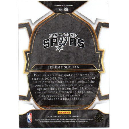 Jeremy Sochan – 2022-23 Panini Select Concourse – No. 86 Rookie Card