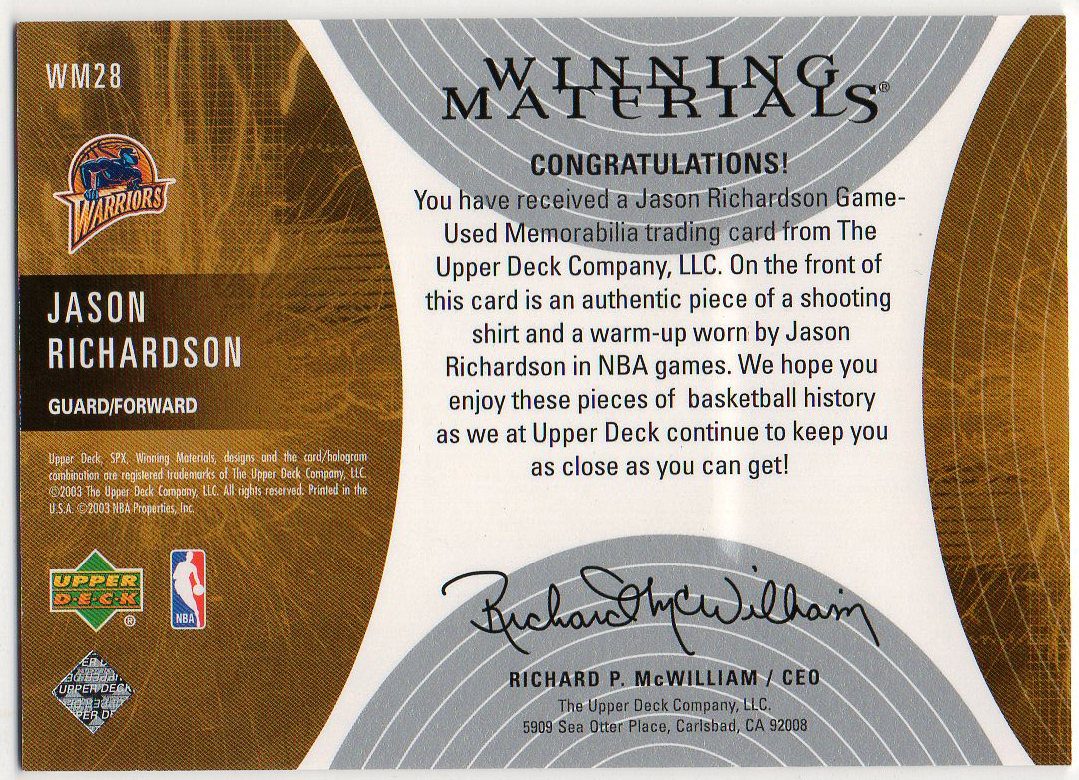 SET: 2003-04 UPPER DECK SPX “WINNING MATERIALS”