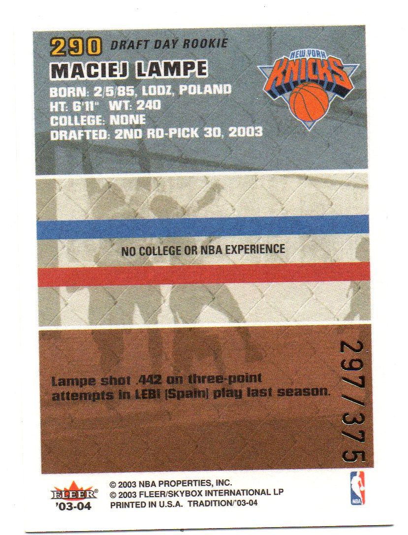 SET: 2003-04 FLEER TRADITION “DRAFT DAY ROOKIE” – NO. 290 (ROOKIE CARD)