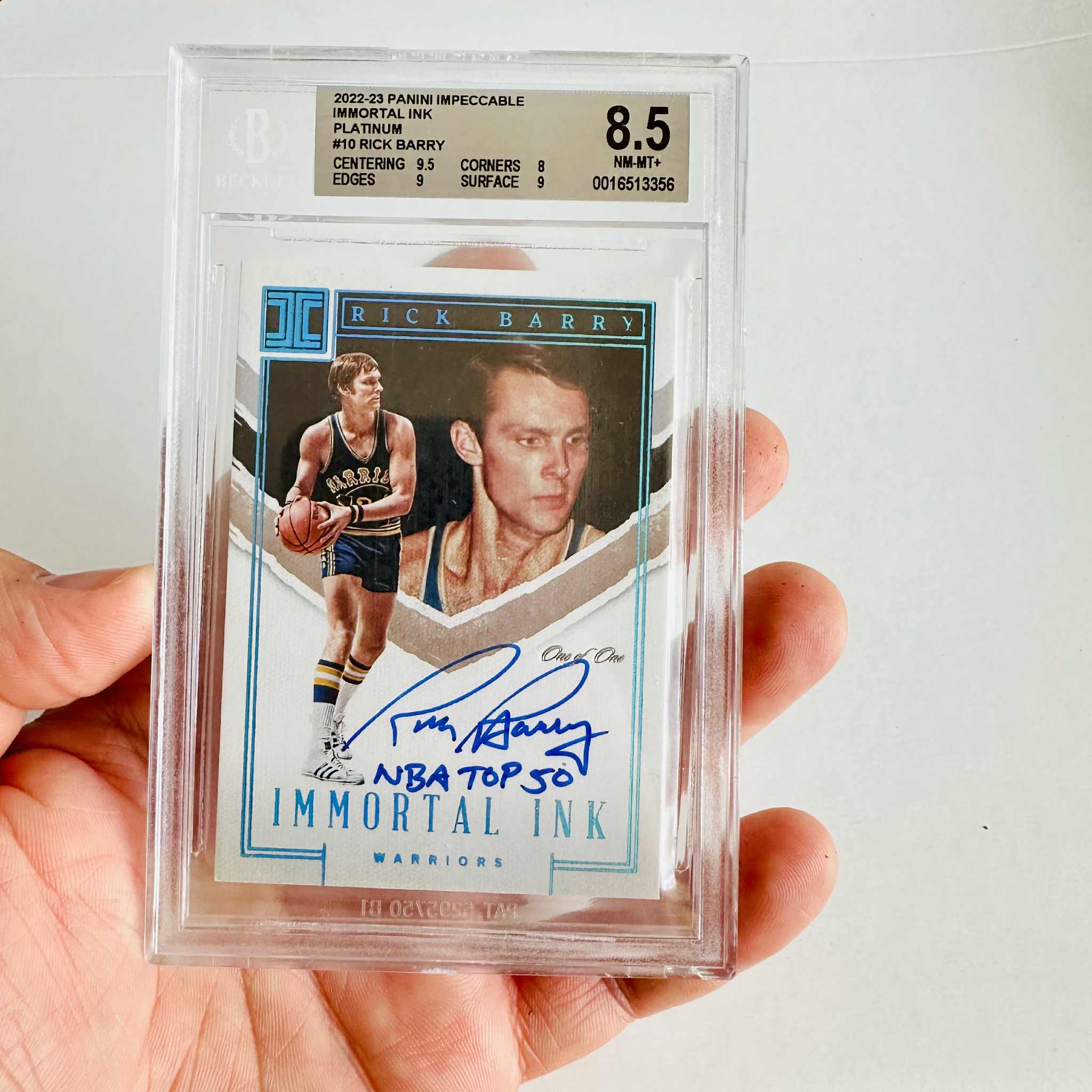 KARTA NBA Z ORYGINALNYM, WŁASNORĘCZNYM AUTOGRAFEM ZAWODNIKA ORAZ SPECJALNĄ INSKRYPCJĄ (WYSTĘPUJĄCĄ TYLKO W WERSJI PLATINUM 1/1) “NBA TOP 50” (RICK BARRY NALEŻY DO ELITARNEGO GRONA 50. NAJLEPSZYCH KOSZYKARZY W HISTORII NBA).