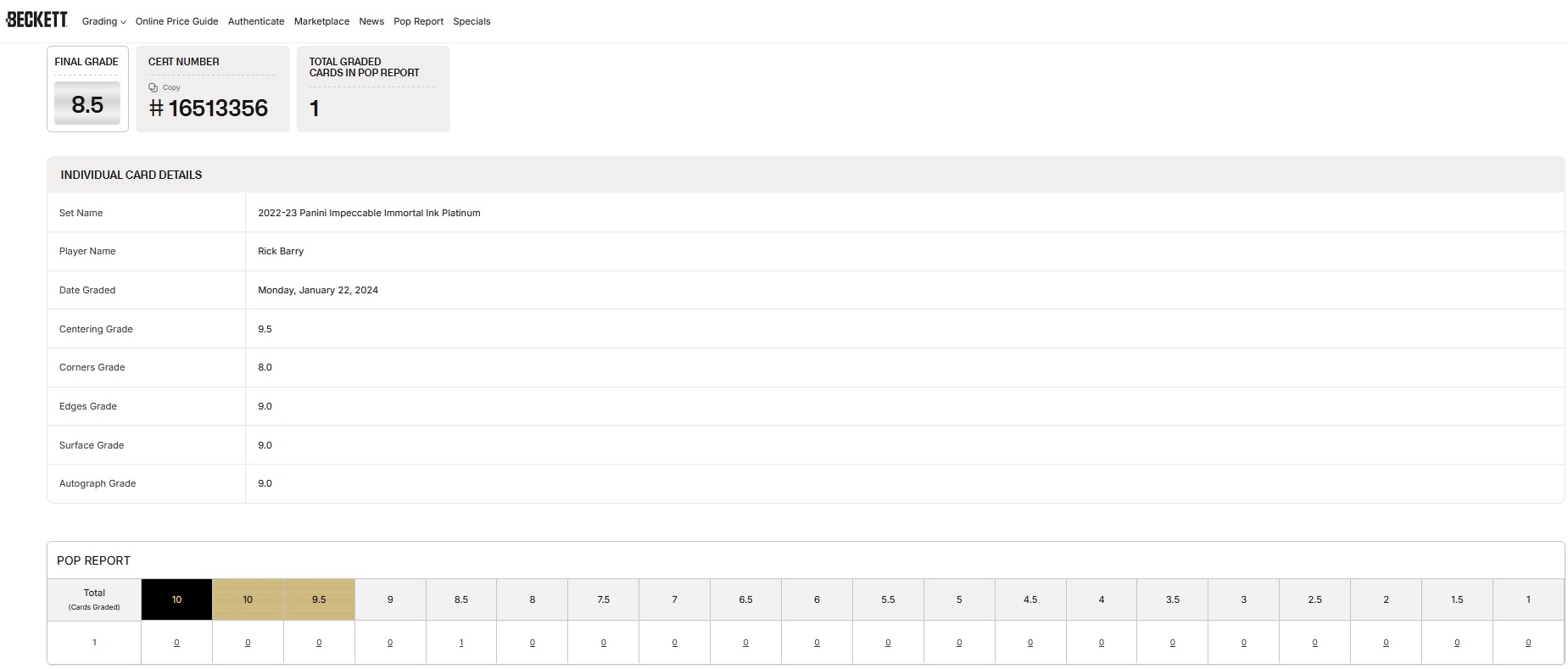 STAN KARTY ZOSTAŁ OCENIONY PRZEZ BECKETT (BGS) NA 8.5+ NEAR MINT – MINT (STAN BARDZO DOBRY)