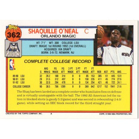 Shaquille O’neal – 1992 Topps ’92 Draft Pick – Rookie Card