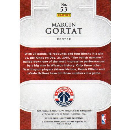Marcin Gortat – Karta NBA Game Used z Kawałkiem Meczowej Koszulki
